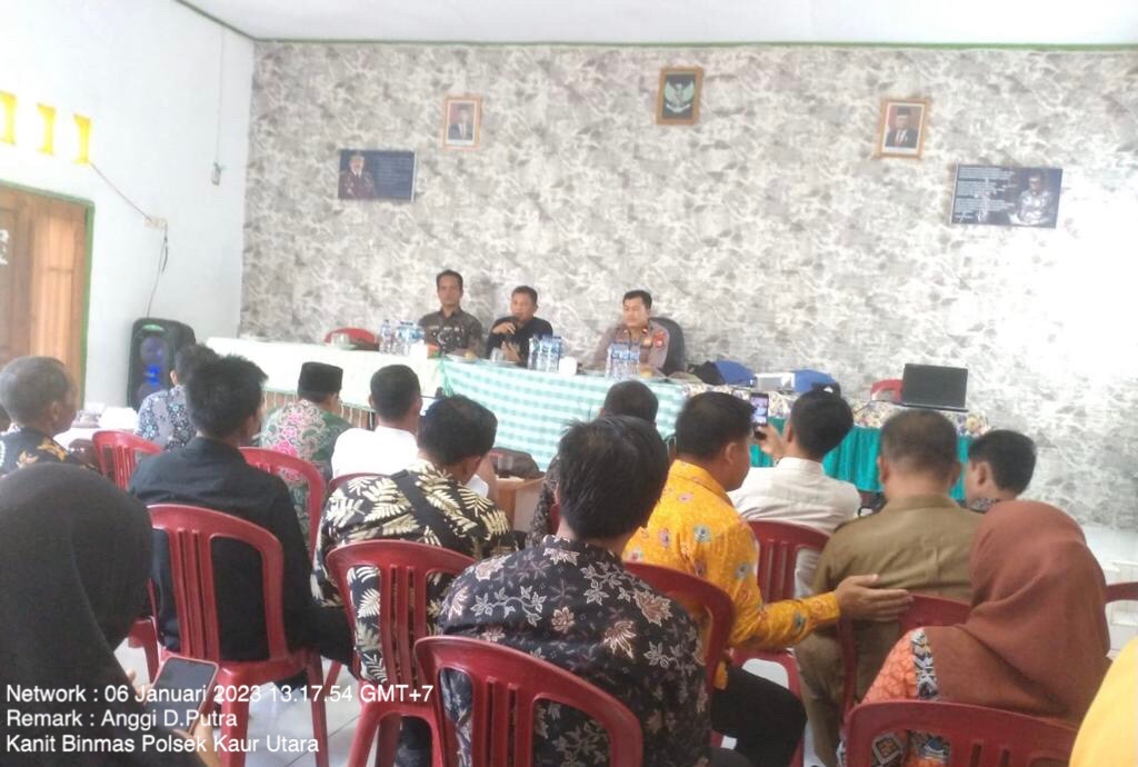 KAUR – Lebih dekat dengan masyarakat dan terima masukan serta saran dari masyarakat Kapolsek Kaur Utara IPDA Slamet Ambya mengunjungi warga Desa Coko Enau Kecamatan Kaur Utara, Kabupaten Kaur, Bengkulu dalam rangka program Jumat Curhat pada Jumat (06/01/2023).