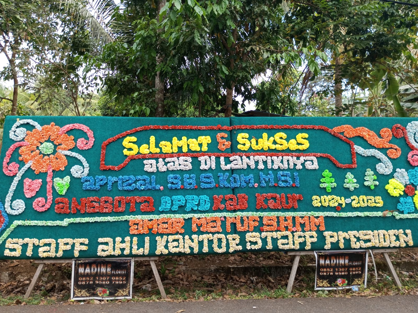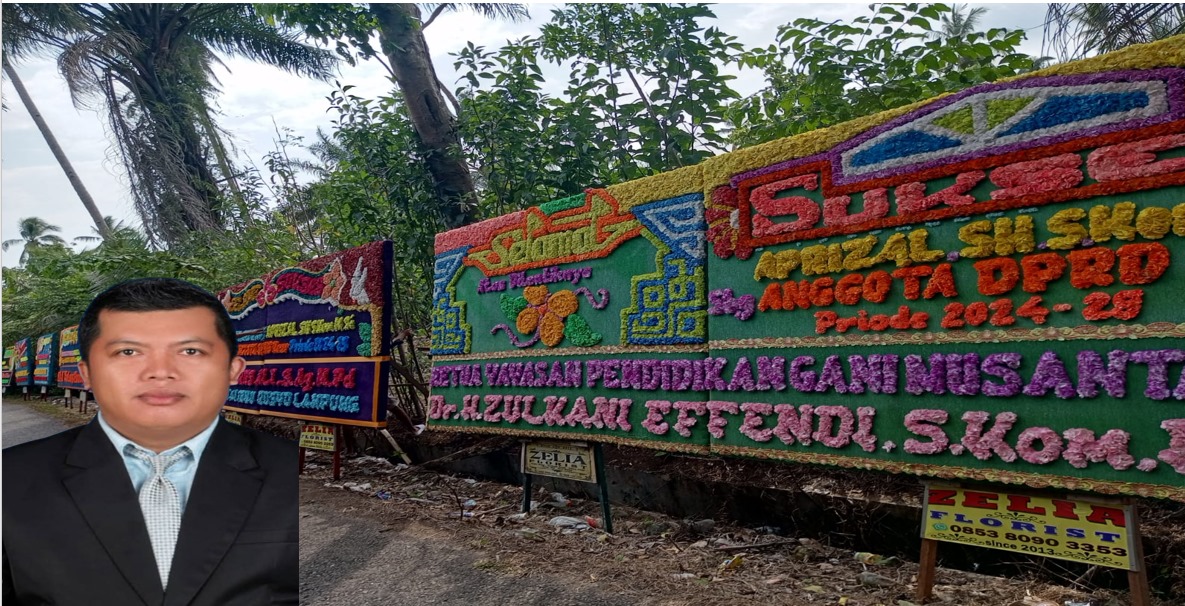 KAUR – Menjelang syukuran atas pelantikan Aprizal, SH, S.Kom, M.Si sebagai anggota Dewan Perwakilan Rakyat Daerah (DPRD) Kabupaten Kaur periode 2024-2029, di Desa Guru Agung II dipenuhi dengan papan bunga ucapan selamat. Acara syukuran tersebut digelar pada Sabtu, 7 September 2024.