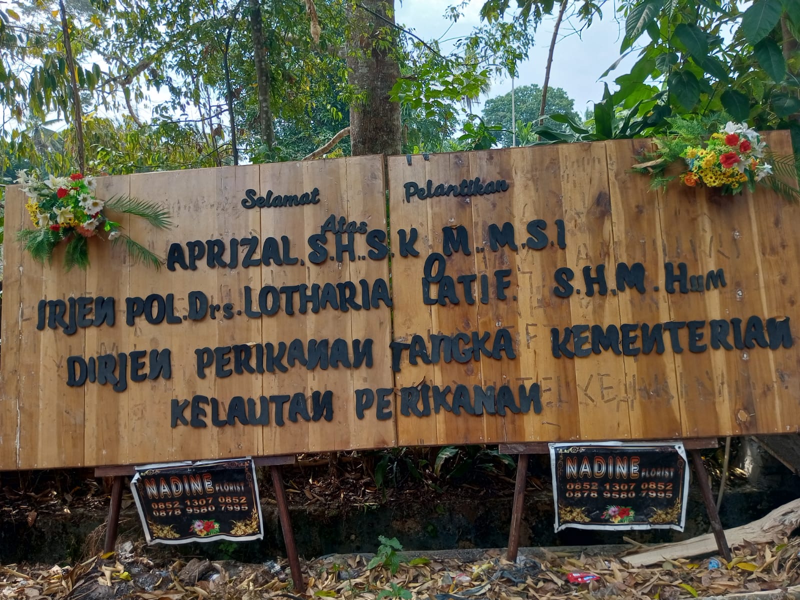 “Kurang lebih ada seratus papan bunga yang datang dari berbagai pihak, mulai dari staf ahli kepresidenan RI, staf Kementerian Kelautan dan Perikanan, Dr. (HC) Rusli Bintang, hingga Yayasan Griya Gemintang Husada Sejahtera, dan masih banyak lagi. Terlalu banyak untuk disebutkan satu per satu,” ujar Aprizal dengan bangga.